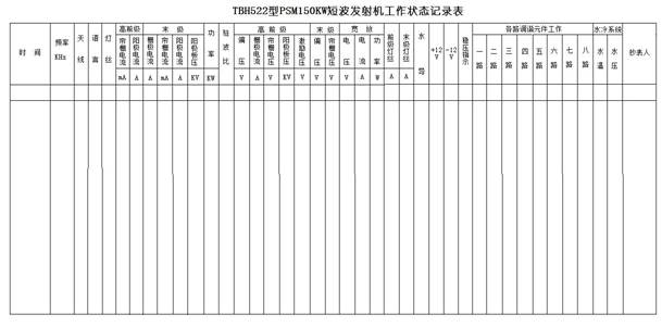系統具備表單化管理功能,按照發射機和天線系統兩大部分進行分類。設備運行表單包括發射機運行狀態表、調幅度記錄表、收測頻率記錄表、主控大廳設備運行記錄表、天線運行狀態表進行詳細分類;巡檢類型按照定時巡檢、日常巡檢、換頻巡檢等進行詳細分類。
