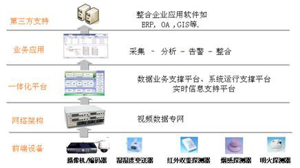 系統(tǒng)由前端設(shè)備、網(wǎng)絡(luò)架構(gòu)、一體化應(yīng)用平臺、業(yè)務(wù)應(yīng)用系統(tǒng)等部分組成。